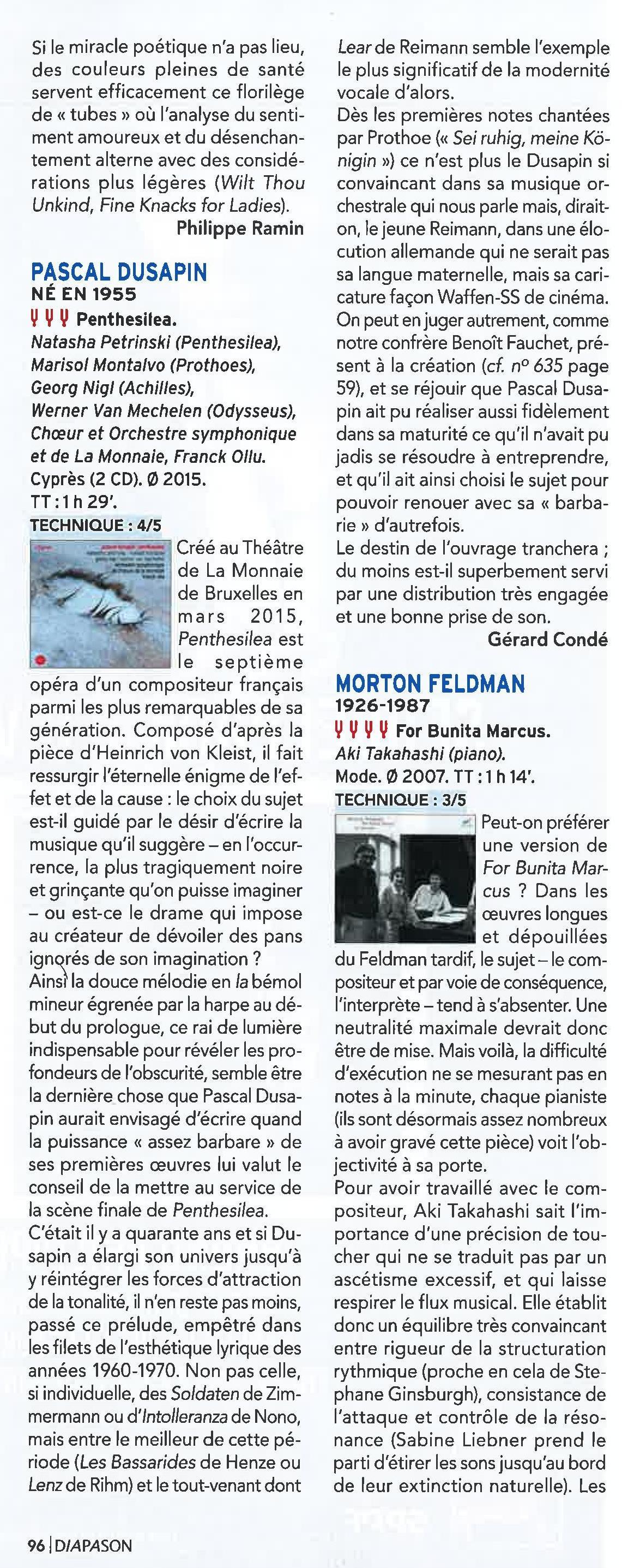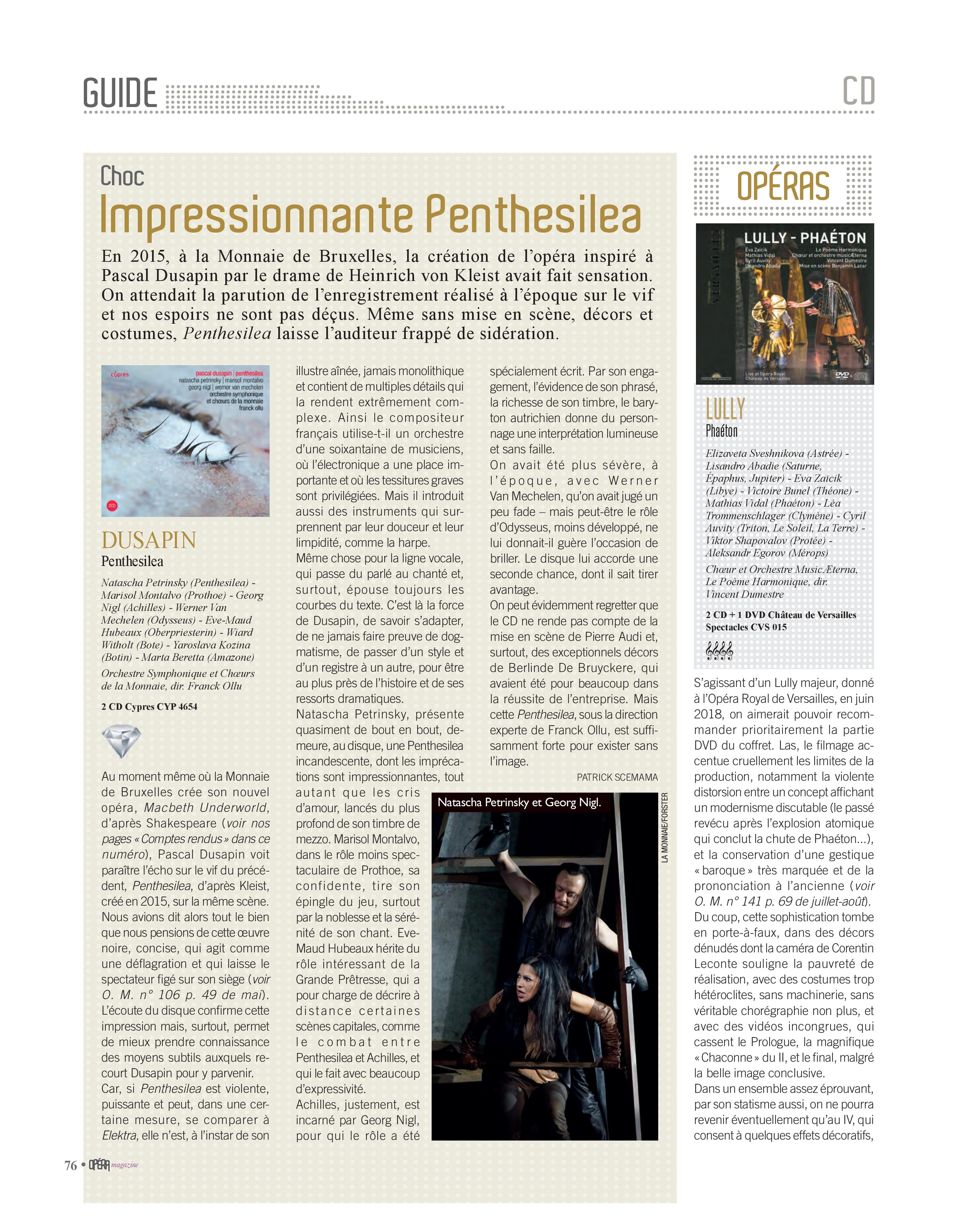 Le compositeur français Pascal Dusapin, vient d’être récompensé par l’International Classical Music Awards pour l’enregistrement de son opéra Penthesilea paru sur le label Cypres.