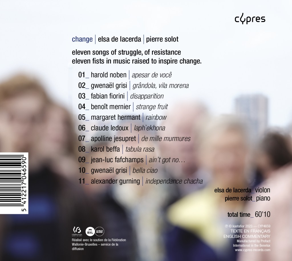 Eleven songs of struggle, of resistance, eleven raised fists in music among so many others in the history of the world, this history that must not be forgotten, its musical memories resonating still in the heart of these eleven creations of today, for change, for peace and for fraternity.