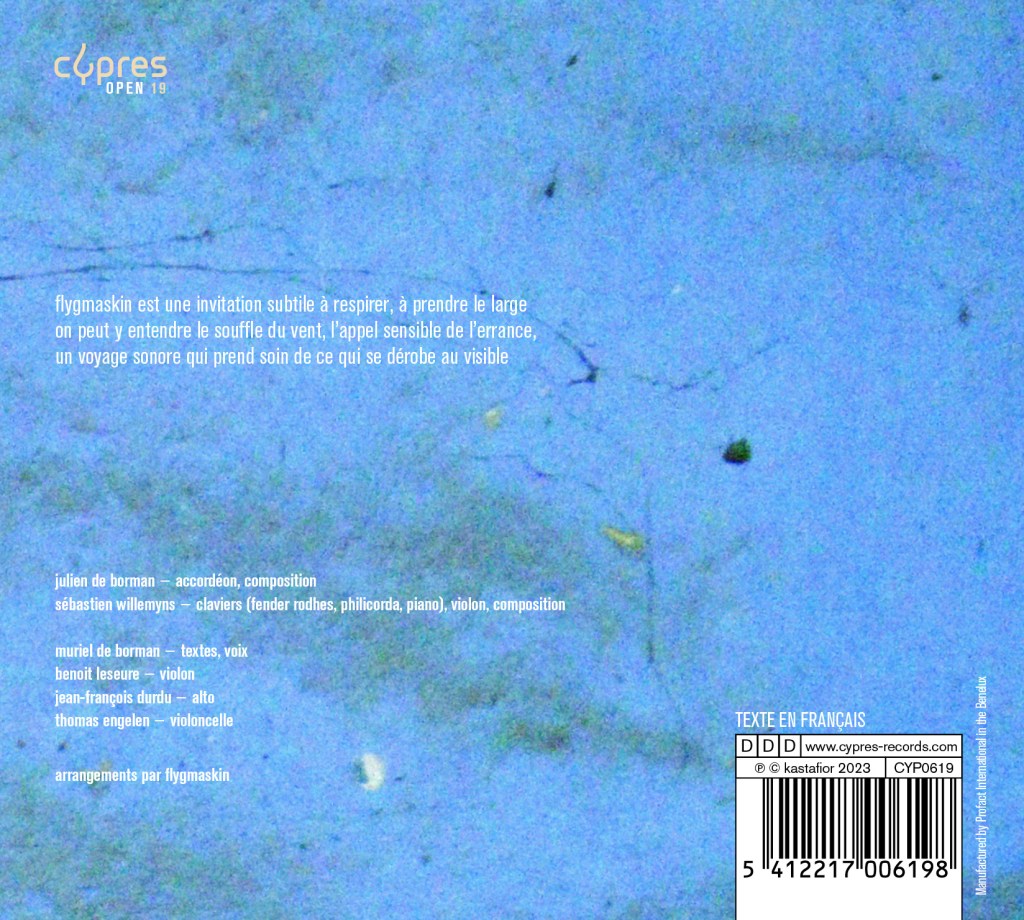 Flygmaskin, literally flying machine. One can read in it the breath of the wind, the journey that ignores what the visible hides. One can hear the sensitive call of wandering. The machine is the sound, precise and fluid. The fuel? This singular mixture of keyboards, the essential dialogues between the accordionist, the keyboardist and the silence. A subtle invitation to breathe, to take time to get away.